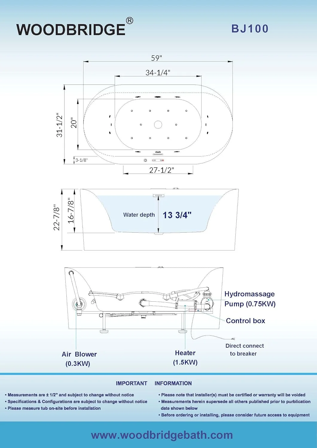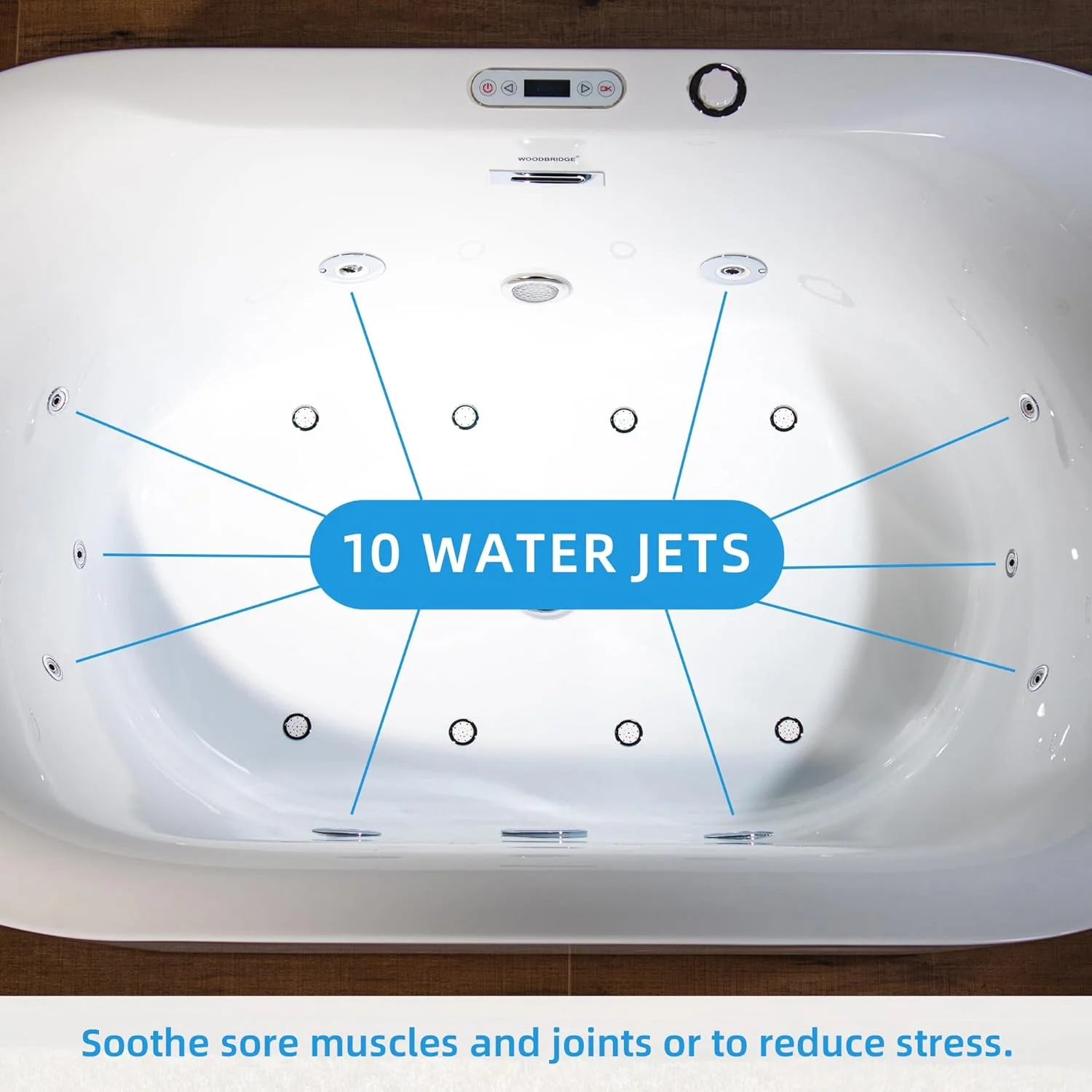 WOODBRIDGE 59″ x 31-1/2″ Whirlpool Water Jetted and Air Bubble Freestanding Heated Soaking Combination Bathtub with LED control panel,BJ-100