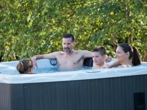 Easy-to-Use Digital Controls: Balboa hot tub controls for effortless temperature and jet adjustments.