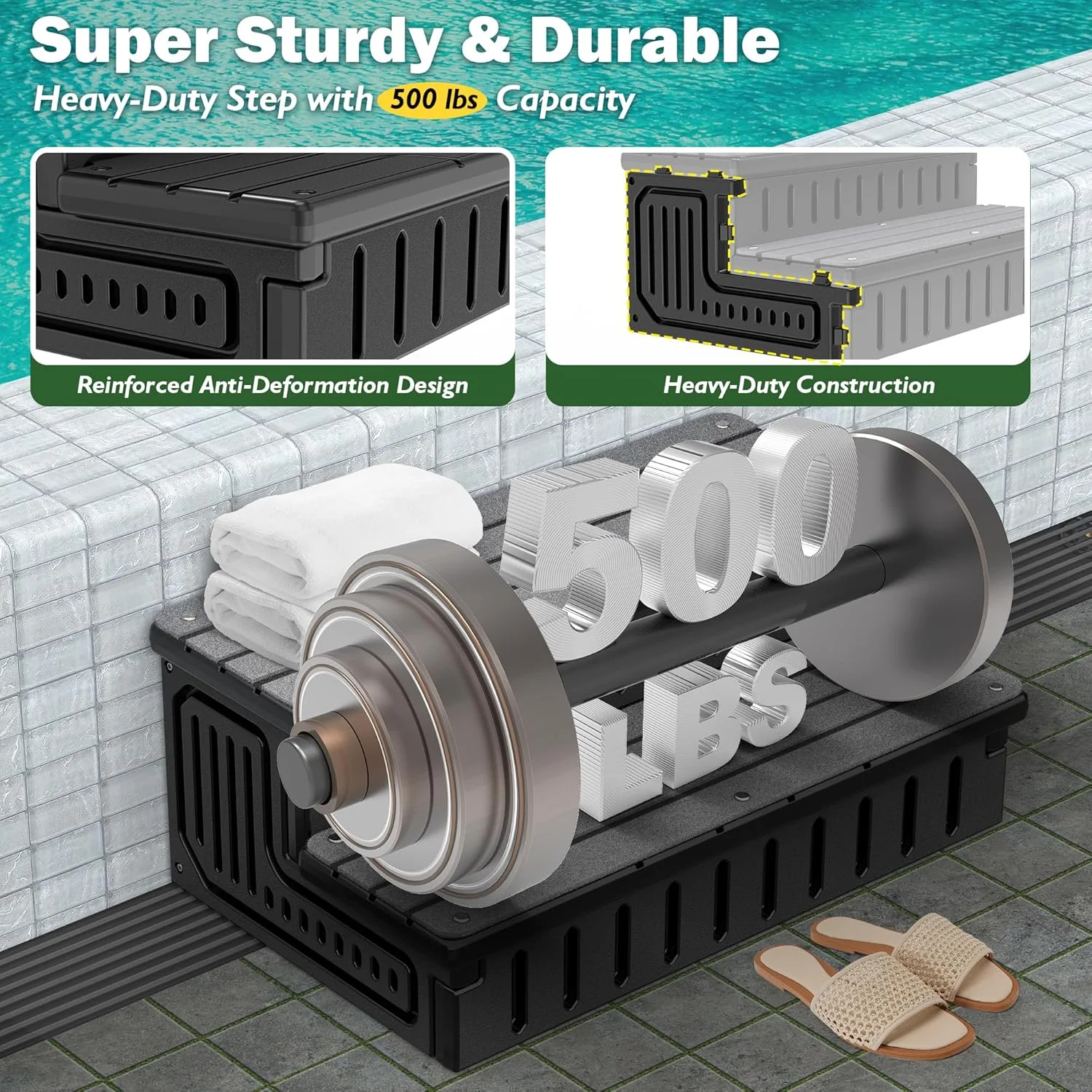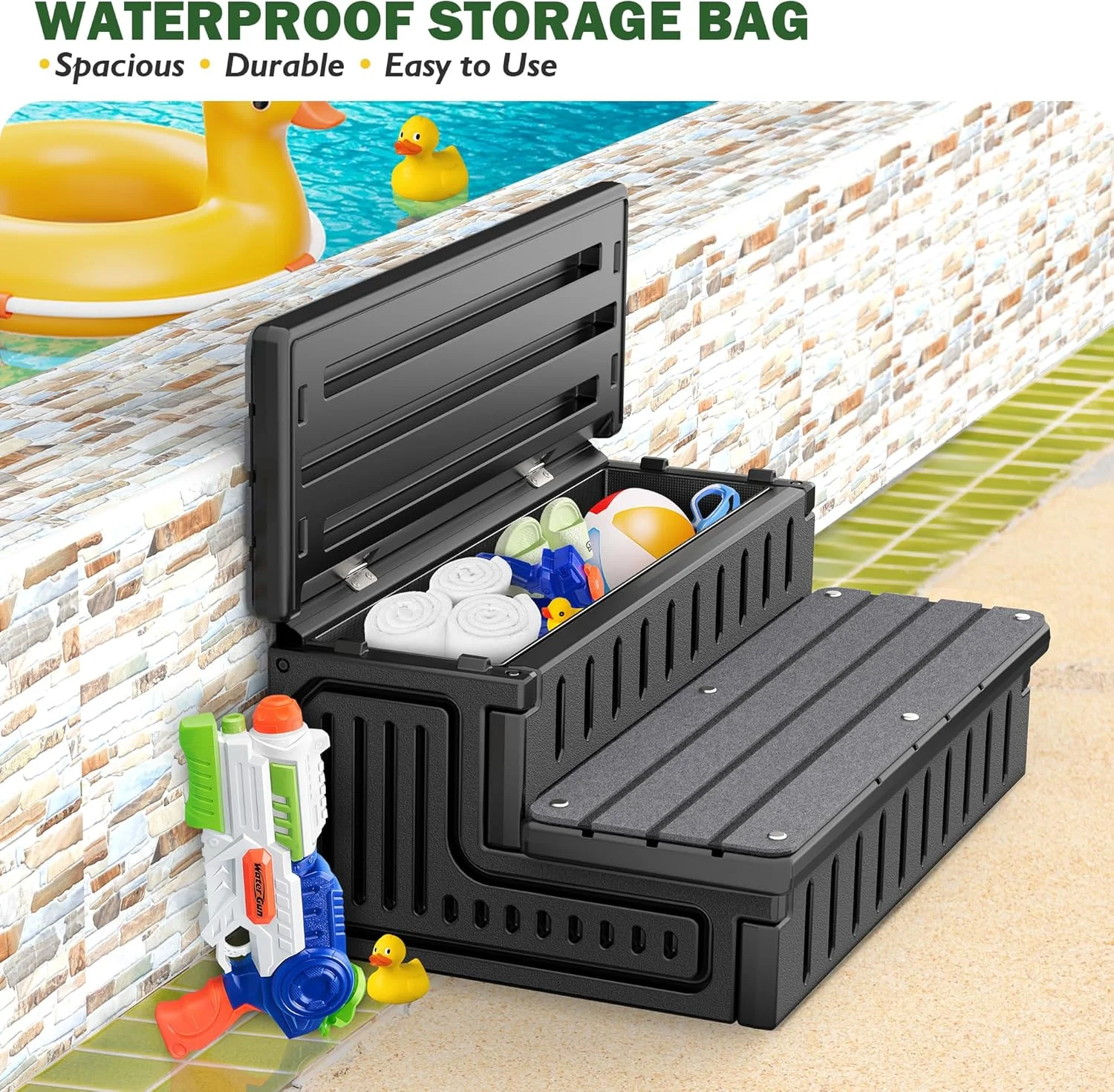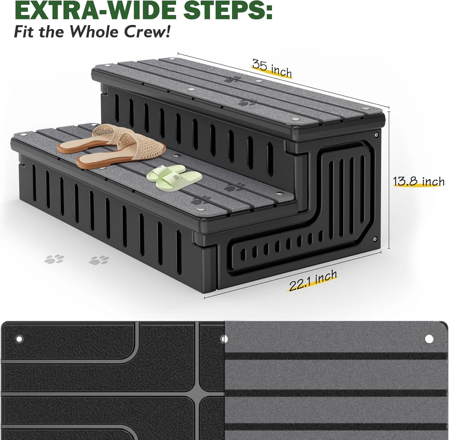 Marudina Hot Tub Steps with Storage – Heavy Duty HDPE Outdoor Stairs, Non-Slip &Waterproof Step Stool with Removable Fabric Cover, All-Weather Steps for Spa, Pool, RV & Porch
