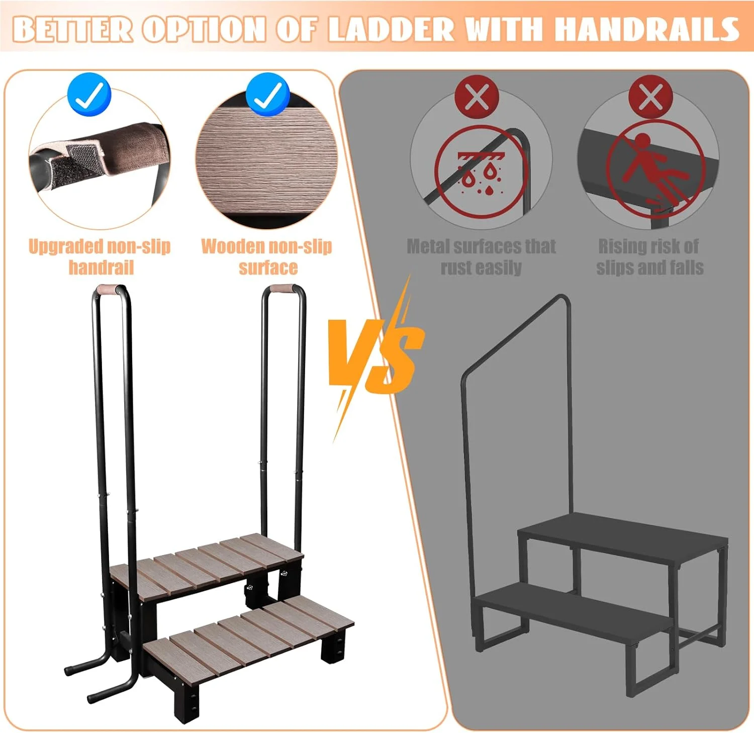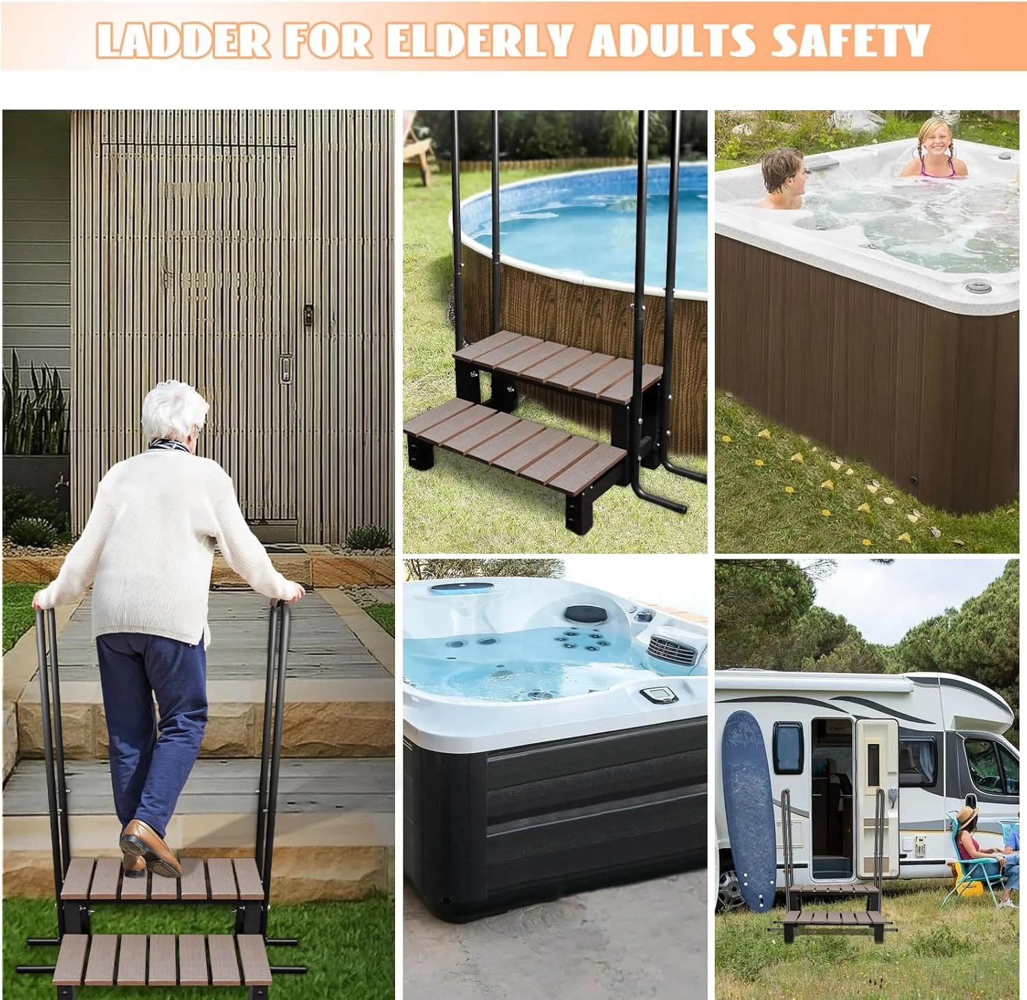 Enhance your hot tub or pool experience with the SETOXYX Hot Tub Steps featuring handrails. Designed for ease, comfort, and safety, these spa stairs with railing give the perfect option for effortless access to your hot tub, above-ground pool, or even mobile trailers. Whether you’re enjoying a soothing bath or taking a quick swim, these hot tub stairs with railing ensure you can climb in and out with confidence.