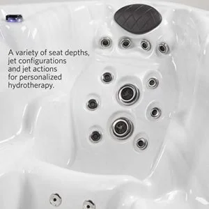 The Regent’s sleek, modern cabinet finish adds sophistication to any backyard or patio. Thoughtful design elements include four plush headrests, four LED-lit cup holders, and a tranquil waterfall feature that enhances the overall spa atmosphere.
