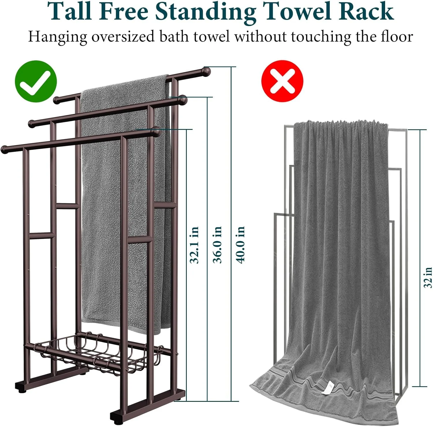 Space-Saving Design: 3-tier towel rack with a detachable storage basket, offering ample space for oversized bath towels, blankets, and toiletries.