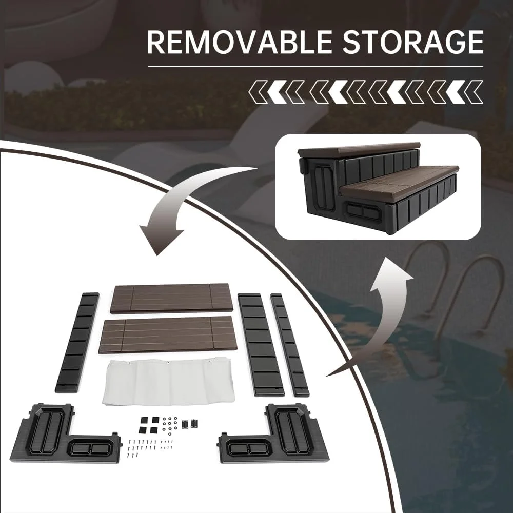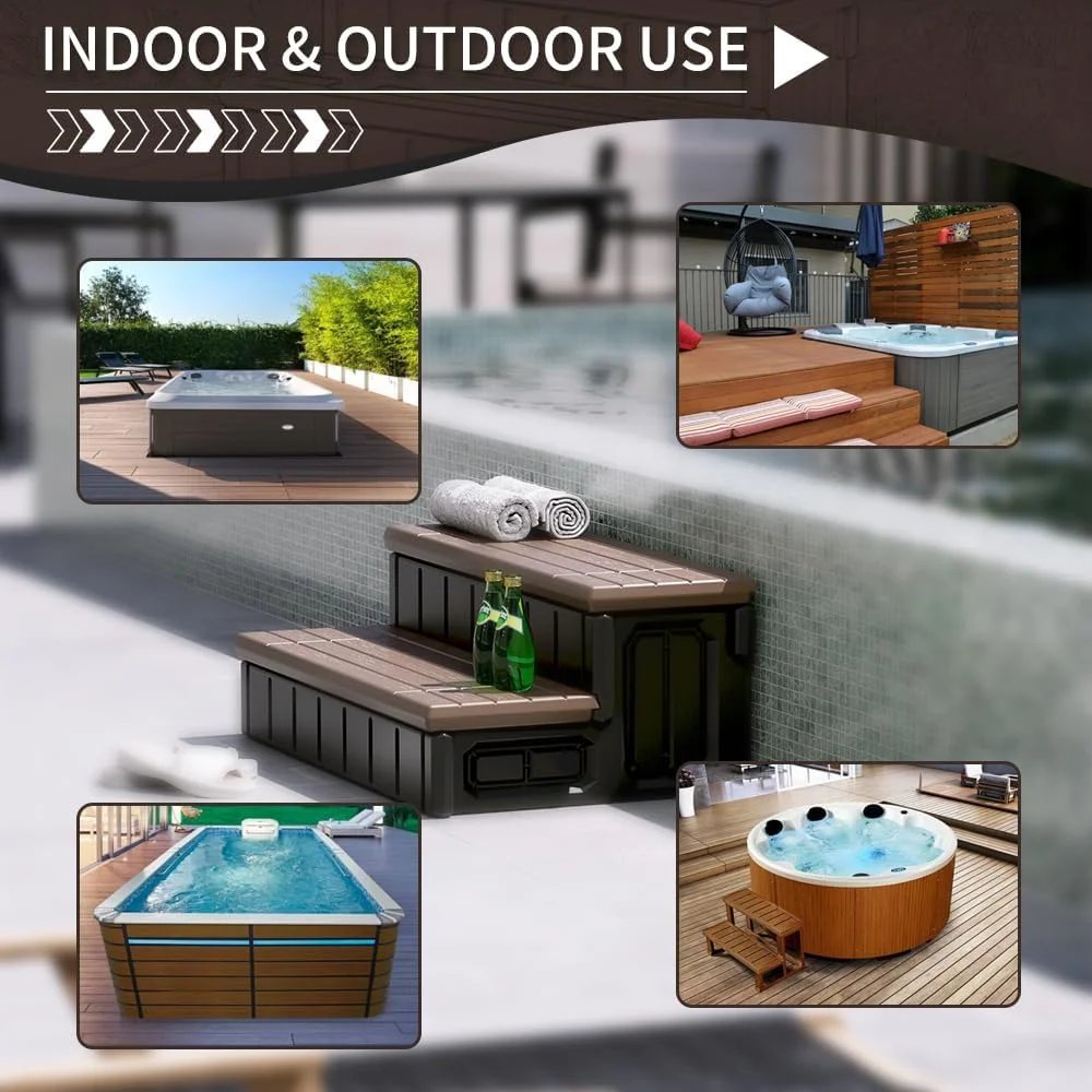Widely Used: Spa steps are flexible and not limited to swimming pools and bathtubs. Whether it’s in front of your patio or at the door of your campervan, they can be done anywhere a step is needed. The versatility of this spa step can be a powerful assistant in a variety of scenarios, bringing great convenience to your life Non-slip Stripe – Carefully designed spa steps, striped texture, effectively increase friction, ensure that even in wet conditions, do not worry about the risk of slipping, giving you a stable and safe experience. The spa steps have a hinged tread that opens inside to have ample storage space for some essential items Material: Made of high quality plastic (PE) for superior durability and impact resistance, which can adapt to any weather and environment Package Content: 1 X Universal Spa Hot Tub Step with Storage. Comes with instructions Easy to assemble: The structure is simple and does not require any special tools, you can easily assemble them together, convenient and fast